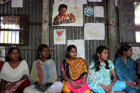 b. Life skills training: The goal of this component is to raise awareness among adolescent girls about issues that are important in their lives. This is a peer-to-peer learning course. After training, the peer leaders facilitate the course in the clubs. Topics include human rights, importance of education, adolescence, menstruation, early marriage, early pregnancy, family planning, prenatal care, child nutrition and development, sexually transmitted infections (STIs) and HIV/AIDS, dowry, domestic violence, trafficking, and acid violence.