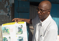 Working in partnership with Nigeria's Federal Ministry of Information and Communications (and with funding from the Japanese government), UNICEF consultants are visiting places like the slum of Mowe in Ogun, Nigeria. Armed with photographs and other informational posters on the prevention of the disease, Dr. Tajudeen Akerele encouraged the 30 community members in attendance at this particular session to share their questions, concerns, and experiences with avian flu. At the conclusion of the 2-hour dialogue, Dr. Akerele distributed printed materials and encouraged participants to share their newly acquired knowledge with others.