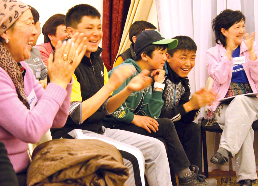Across Kyrgyzstan, youth participants in IREX's Youth Theater for Peace (YTP) programme, funded by the United States Agency for International Development (USAID), are using the Drama for Conflict Transformation (DCT) methodology introduced in this toolkit to create community conversation about conflict issues. YTP introduces DCT to youth, educators, and institutions as a tool to start conversations and strengthen communities. IREX and its affiliates have implemented DCT-based projects in conflict-prone areas of Kyrgyzstan, Tajikistan, Indonesia, Somaliland, and Kenya. Since 2010, participants have collaborated with more than 50,000 audience members to talk about solutions to bullying in schools, labour migration, bride kidnapping, resource scarcity, and substance abuse. The idea is that, "when youth are engaged positively and given a voice, they can play vital roles in building peace. This toolkit is designed to introduce young people to an innovative theater methodology that creatively examines and transforms conflict. After working through the exercises in this manual, youth will be equipped to lead community dialogue as agents of positive change."