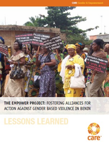 This 8-page case study highlights the experiences and lessons learned from Care International's EMPOWER (Enabling Mobilization and Policy Implementation for Women’s Rights) Project in Benin, which was designed to galvanise a national response to gender-based violence (GBV) by strengthening support services for survivors and improving policies and laws on GBV and women's rights more broadly. Funded by the United States Agency for International Development (USAID), the project was run from 2007 to 2012. According to the case study, the contribution of CARE and its partners in shaping the national response to GBV was rooted in their ability to convene a vast network of players as change agents, advocates, pressure groups, survivors, service providers, and decision makers, to reduce GBV and assist survivors.