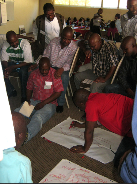 C-Change worked in partnership with the National AIDS Commission (NAC), the Ministry of Health and Social Welfare (MoHSW) in Lesotho, and a local non-governmental organisation (NGO), Phela Health and Development Communications (Phela) to implement the Relationships: Intimacy Without Risk project. In the context of Lesotho, C-Change community dialogues were facilitator-led, informal, participatory groups that were provided with open space for group members to become comfortable with discussing sexual issues, identify the drivers of HIV within their wider social and cultural contexts, and address their own attitudes and behaviours toward the virus in order to make positive individual and collective decisions and plans to further disease reduction.